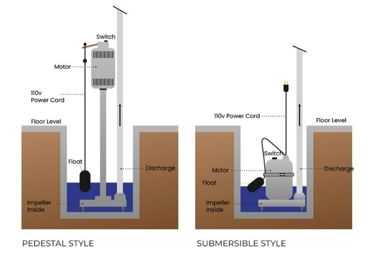 Types of Sump Pumps There are two main types of sump pumps: submersible and pedestal.