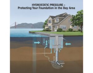 In the Bay Area and Marin County, heavy rains and poor drainage can create hydrostatic pressure – the force of water in the soil pushing against your foundation. Over time, this hidden stress can cause costly damage.